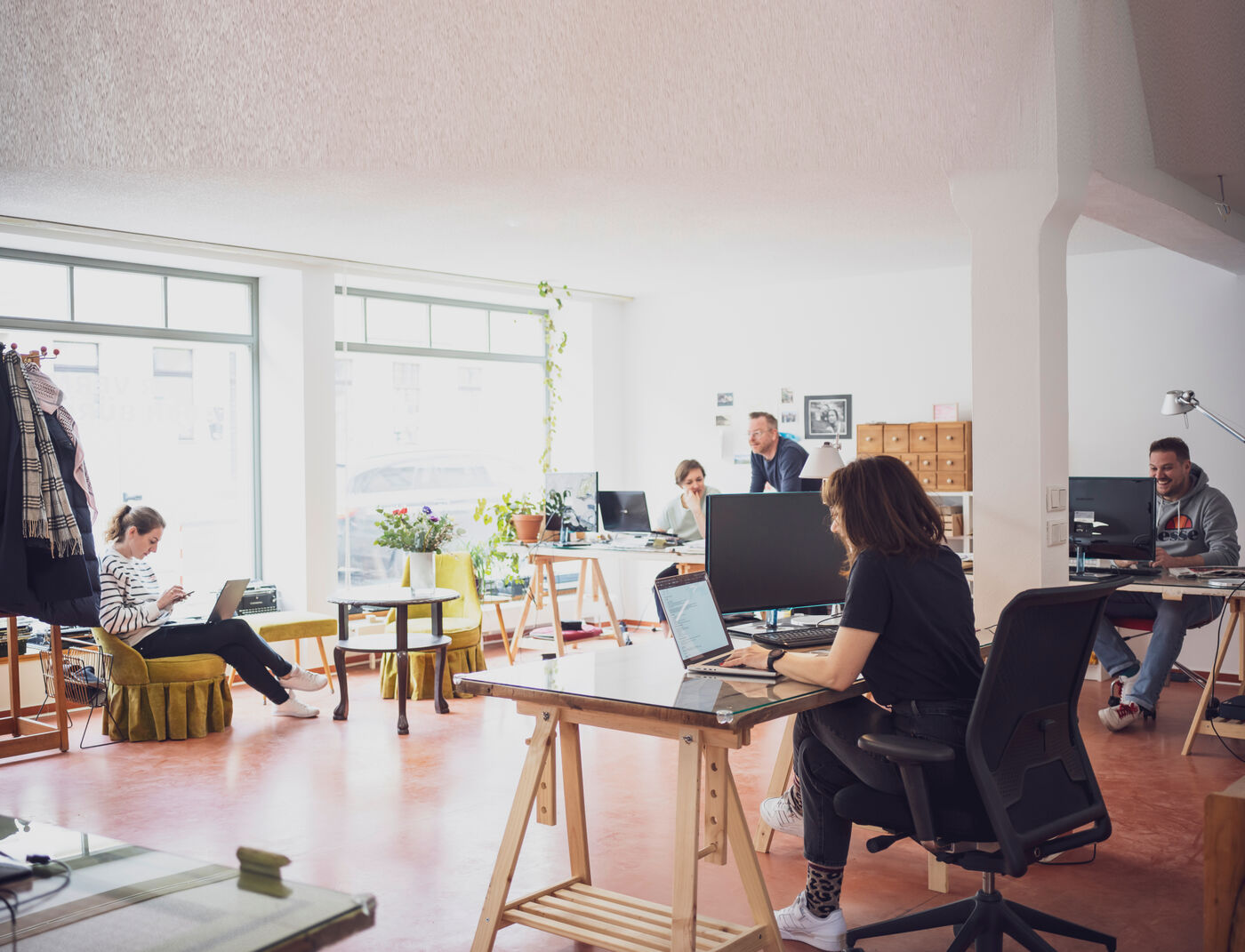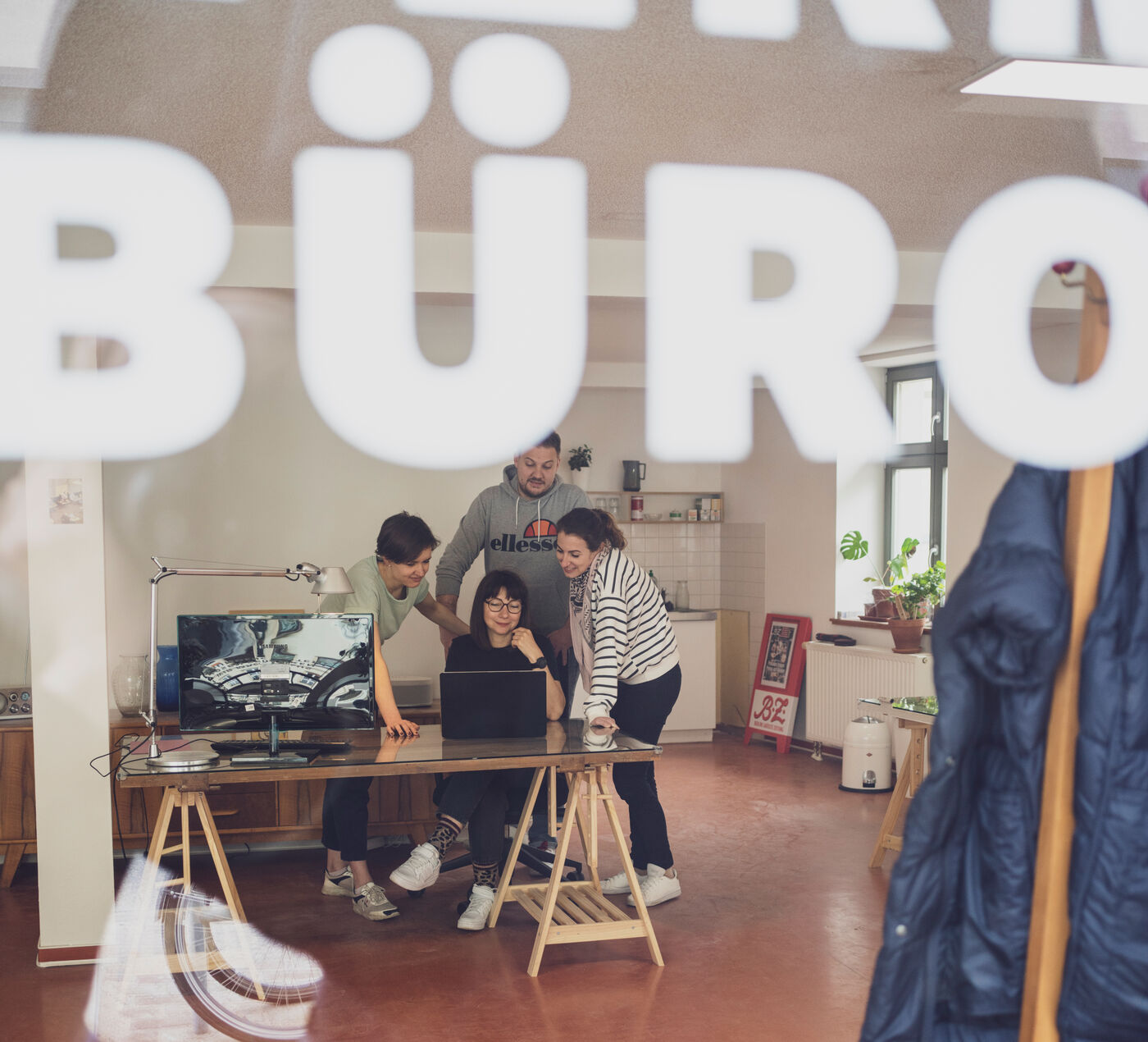 Where our desks are now, clothes were sold for more than 150 years. Sometimes as a GDR consignment store, sometimes as a privately run business, later the tourist information of the seven-lake town was here.Now we are here.